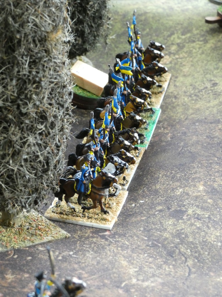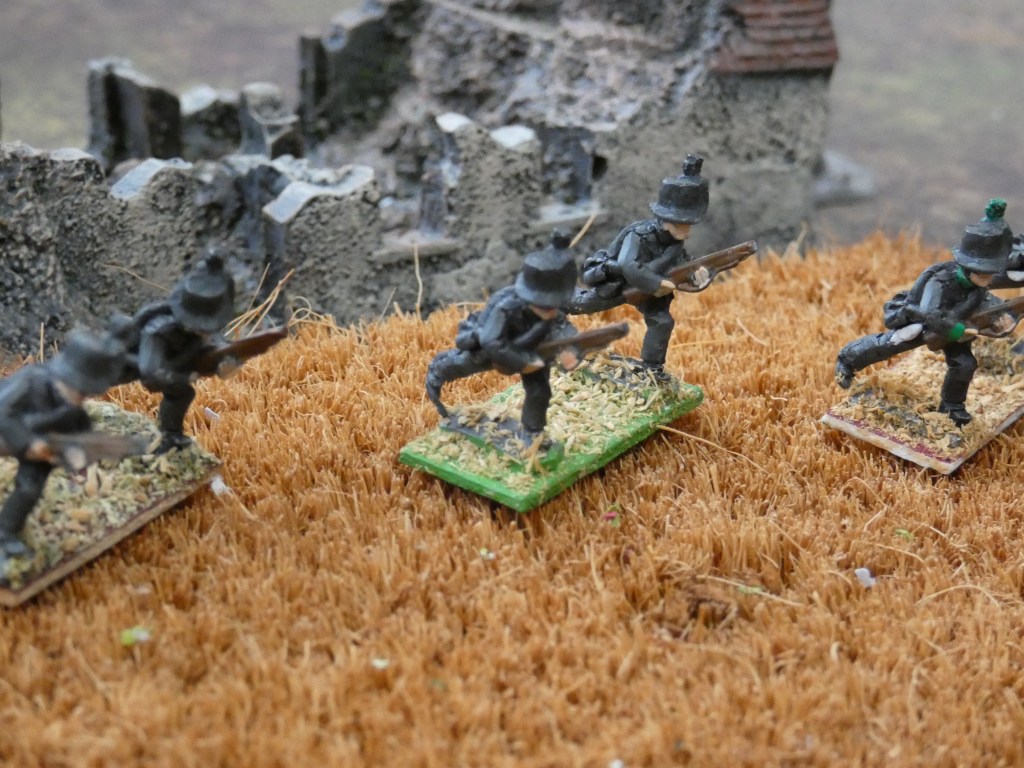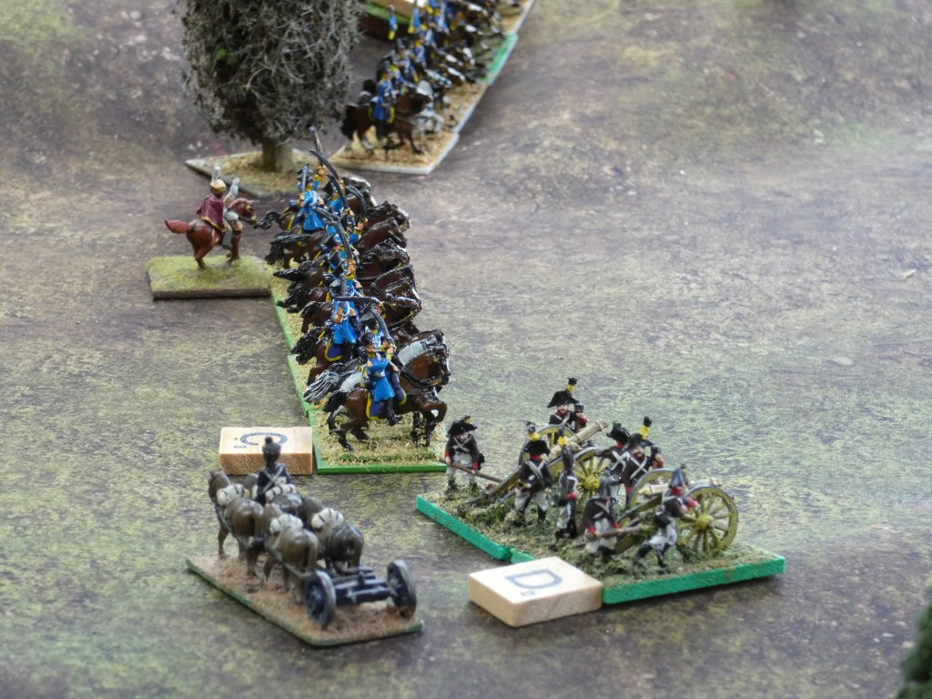 The Austrian advanced guard commander (Radetzky) ordered a combined arms assault after softening up the position with his 6lbdr Horse Artillery. The high ground to the left flank of the Bavarian held town, as well as the central valley came under immediate attack, but the first assault was repulsed. Austrian reinforcements under General-Major Lindenau (2nd Brigade) and General-Major Mayer (1st Brigade) both moved to attack the position, and eventually the Austrian 3rd Uhlan regiment broke the Bavarian Cavalry under Seydewitz on the Austrian right, and swept down the slopes to cut off the retreat route. Deroy committed Vincenti’s 1st Brigade to halt the Austrian attack, and pulled back his Division up the valley towards Prettrach, covered by Preysing’s two regiments of Chevauxleger.